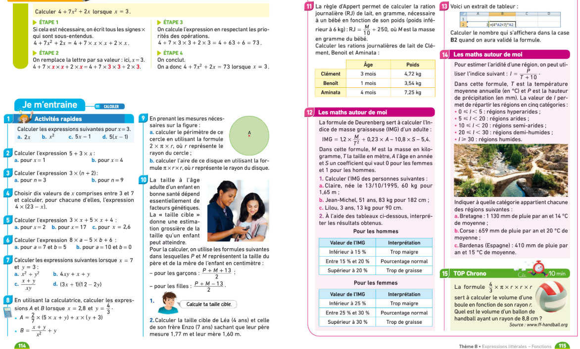 Appliquer une formule (substitution) - Cinquième