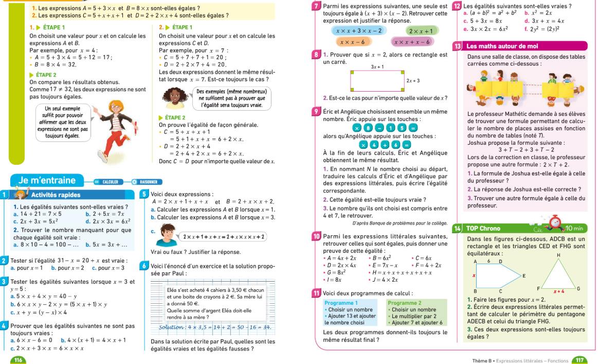 Tester une égalité pour résoudre un problème - Cinquième